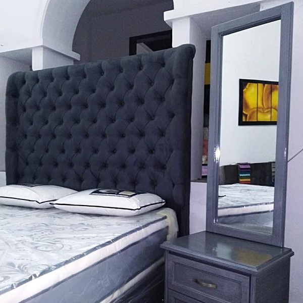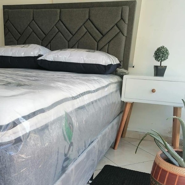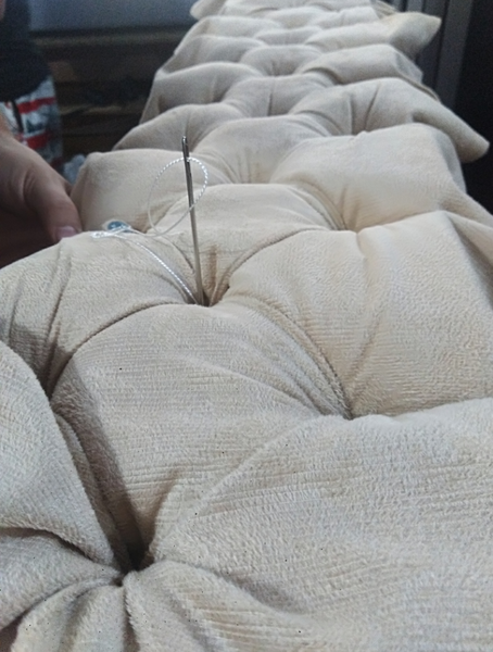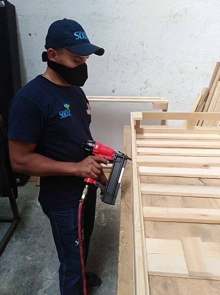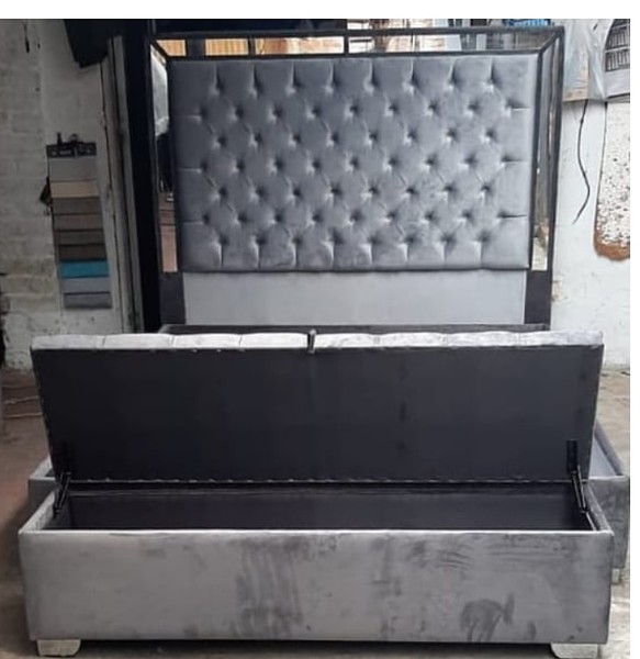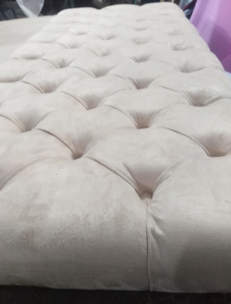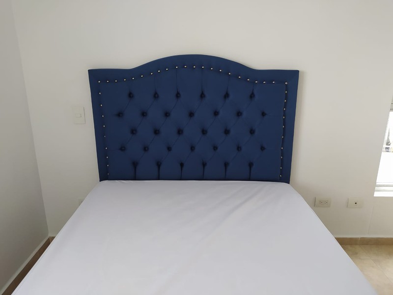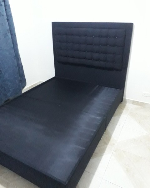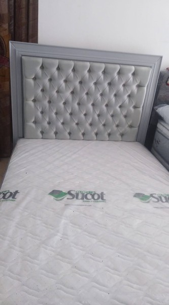 Estructura de madera tapizada en espuma naranja densidad 23, tapizada en tela, pranna o cuerina preferida.