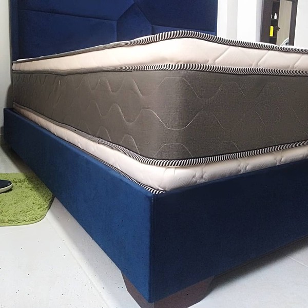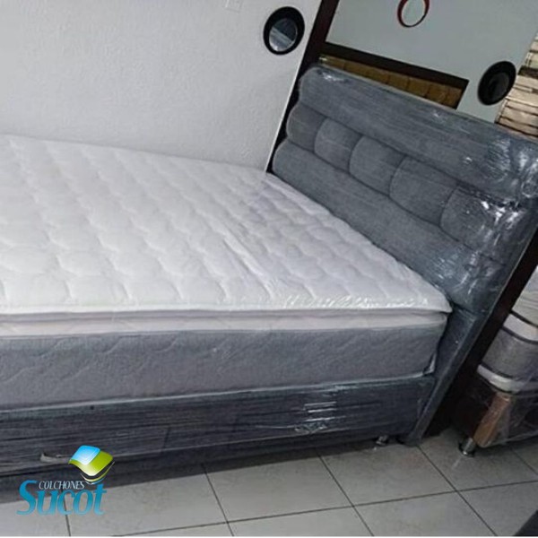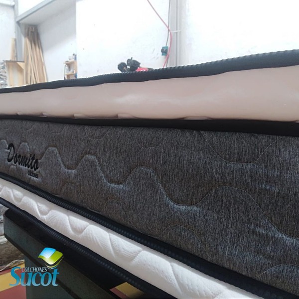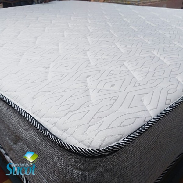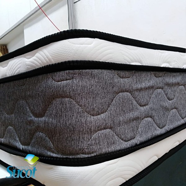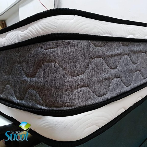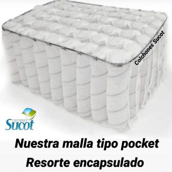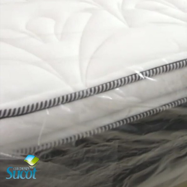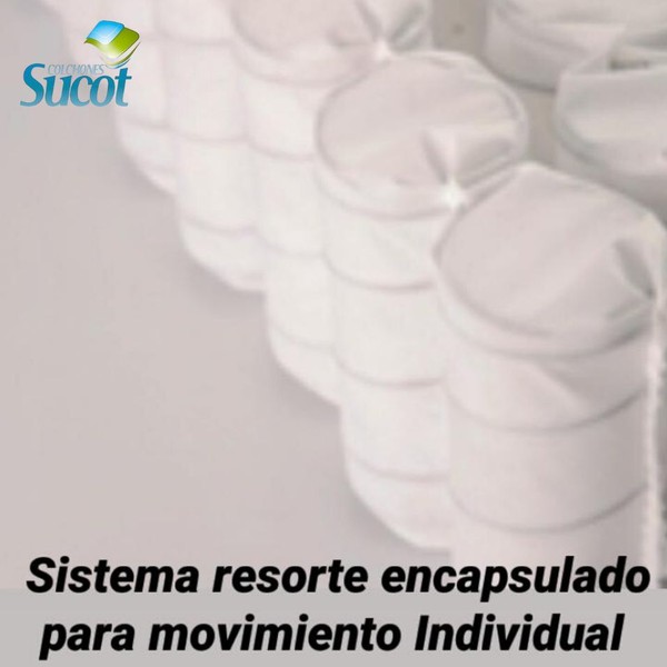 Resorte individual encapsulado de alta resistencia para mayor soporte lumbar y aislamiento de movimiento, estructura compuesta por resorte cilíndrico embolsados en tela no tejida (Politex) sellado por soldadura ultrasonica para un mayor confort.